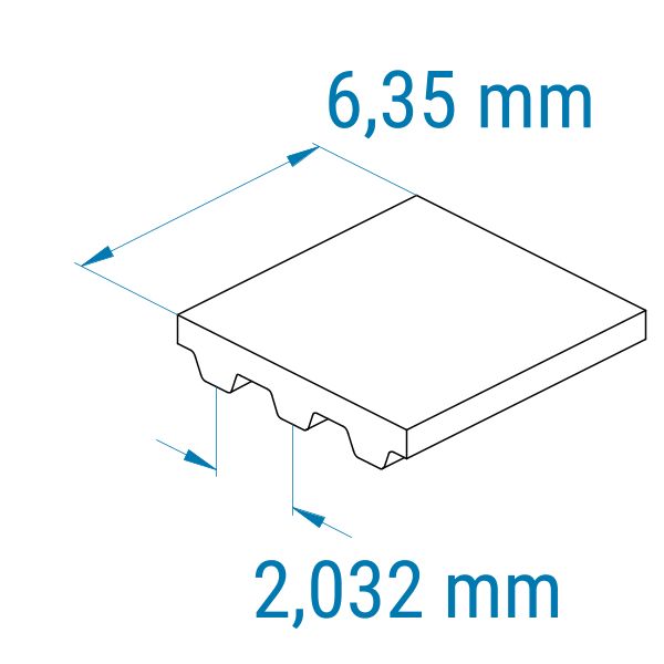 MXL-Zahnriemen können zwar nur geringe Kräfte übertragen, bieten dafür aber eine hohe Präzision. Minimaler Durchmesser der Zahnriemenscheibe: 6 mm