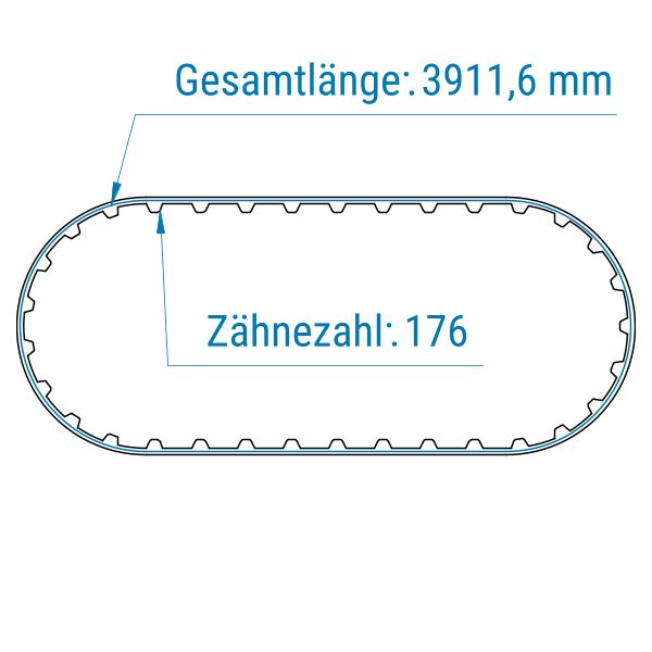 Zahnriemen dieser Art werden in der Länge geschlossen gefertigt. Dies bedeutet, dass die Längenauswahl auf die Fertigungslängen begrenzt ist. Durch den spiralförmig eingelassenen Zugstrang ermöglicht diese Fertigungsart eine hohe Kraftübertragung.
