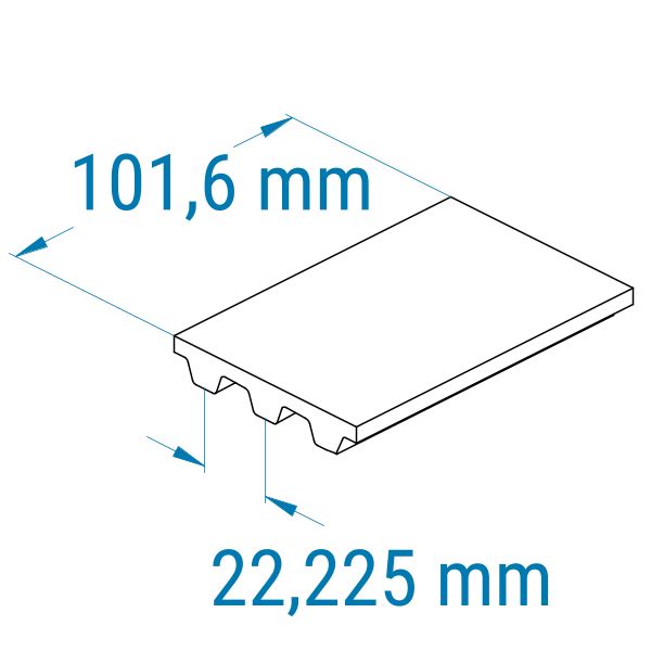Standard-Antriebsriemen werden als geschlossene, breite Zahnwickel angeboten. Das bedeutet, dass der Zugstrang im Zahnriemen spiralförmig gewickelt und somit nicht unterbrochen ist. Dadurch kann der Riemen große Zugkräfte aufnehmen. Jeder Riemen wird auf die von Ihnen gewünschte Breite zugeschnitten. Die Fertigung erfolgt in Breiten von 200–800 mm. Bei der Länge stehen Ihnen vorgegebene Maße zur Auswahl.