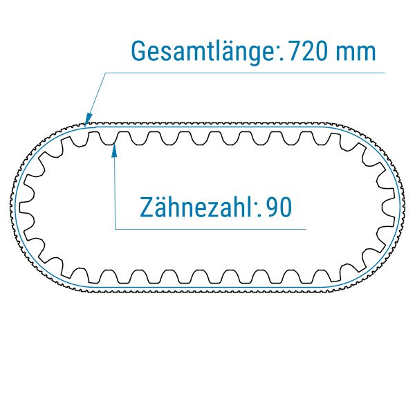 Standard-Antriebsriemen werden als geschlossene, breite Zahnwickel angeboten. Das bedeutet, dass der Zugstrang im Zahnriemen spiralförmig gewickelt und somit nicht unterbrochen ist. Dadurch kann der Riemen große Zugkräfte aufnehmen. Jeder Riemen wird auf die von Ihnen gewünschte Breite zugeschnitten. Die Fertigung erfolgt in Breiten von 200–800 mm. Bei der Länge stehen Ihnen vorgegebene Maße zur Auswahl.