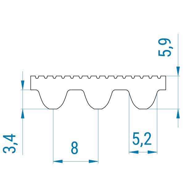 Das Profil eines Zahnriemens gibt Form, Größe und Abstand der Zähne an.