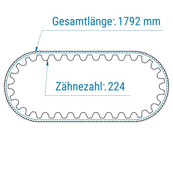 Standard-Antriebsriemen werden als geschlossene, breite Zahnwickel angeboten. Das bedeutet, dass der Zugstrang im Zahnriemen spiralförmig gewickelt und somit nicht unterbrochen ist. Dadurch kann der Riemen große Zugkräfte aufnehmen. Jeder Riemen wird auf die von Ihnen gewünschte Breite zugeschnitten. Die Fertigung erfolgt in Breiten von 200–800 mm. Bei der Länge stehen Ihnen vorgegebene Maße zur Auswahl.