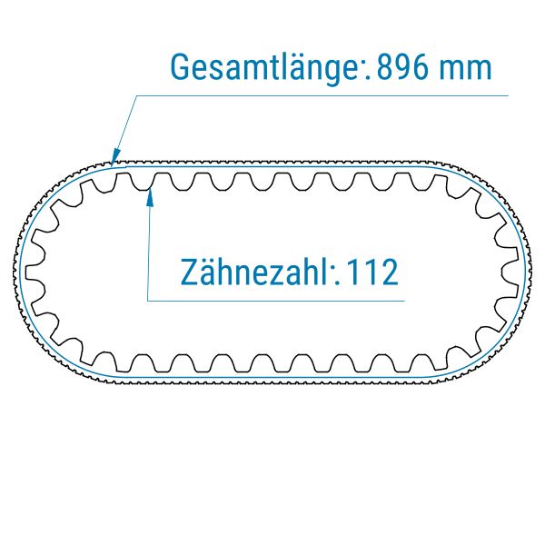 Standard-Antriebsriemen werden als geschlossene, breite Zahnwickel angeboten. Das bedeutet, dass der Zugstrang im Zahnriemen spiralförmig gewickelt und somit nicht unterbrochen ist. Dadurch kann der Riemen große Zugkräfte aufnehmen. Jeder Riemen wird auf die von Ihnen gewünschte Breite zugeschnitten. Die Fertigung erfolgt in Breiten von 200–800 mm. Bei der Länge stehen Ihnen vorgegebene Maße zur Auswahl.