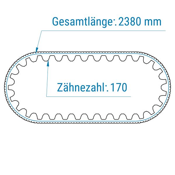 Standard-Antriebsriemen werden als geschlossene, breite Zahnwickel angeboten. Das bedeutet, dass der Zugstrang im Zahnriemen spiralförmig gewickelt und somit nicht unterbrochen ist. Dadurch kann der Riemen große Zugkräfte aufnehmen. Jeder Riemen wird auf die von Ihnen gewünschte Breite zugeschnitten. Die Fertigung erfolgt in Breiten von 200–800 mm. Bei der Länge stehen Ihnen vorgegebene Maße zur Auswahl.
