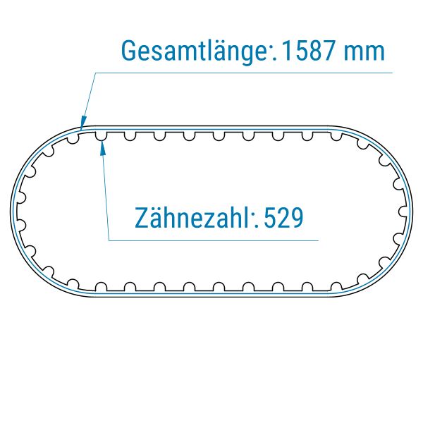 Zahnriemen dieser Art werden in der Länge geschlossen gefertigt. Dies bedeutet, dass die Längenauswahl auf die Fertigungslängen begrenzt ist. Durch den spiralförmig eingelassenen Zugstrang ermöglicht diese Fertigungsart eine hohe Kraftübertragung.