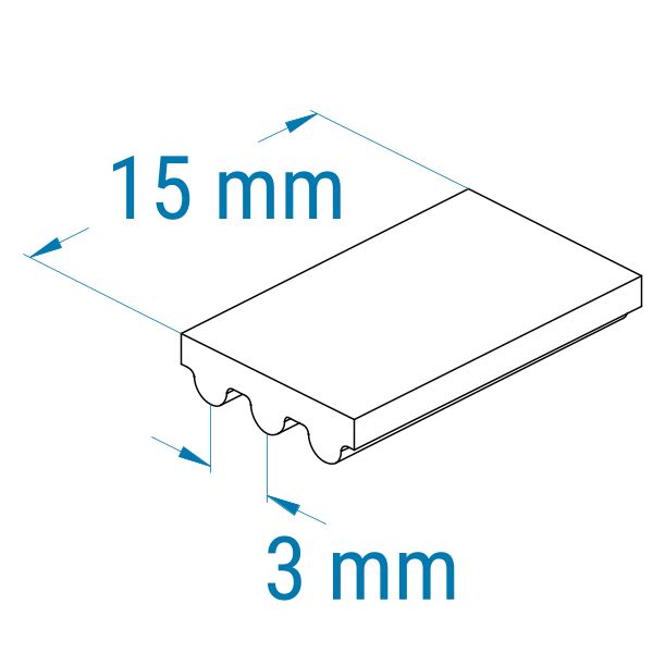 Das 3MGT-Profil verfügt über eine halbrunde Zahnform und ist dem HTD-Profil sehr ähnlich. 3MGT und 5MGT können die höhere Leistung nur mit den originalen Gates MR-Zahnriemenscheiben entfalten. 8MGT- und 14MGT-Zahnriemen werden hingegen in normalen 8M- bzw. 14M-Zahnriemenscheiben (HTD) betrieben. Das 3MGT-Profil zeigt die Teilung von 3 mm an. Die Teilung ist hierbei der Abstand von Zahnmitte zu Zahnmitte und beträgt 3 mm. Diese Riemen sind speziell verstärkt und haben eine hohe Positionsgenauigkeit.