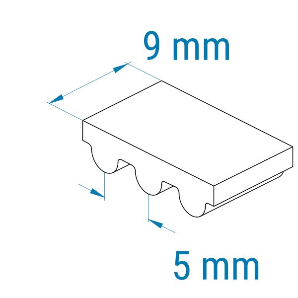Das 5MGT-Profil verfügt über eine halbrunde Zahnform und ist dem HTD-Profil sehr ähnlich. 3MGT und 5MGT können die höhere Leistung nur mit den originalen Gates MR-Zahnriemenscheiben entfalten. 8MGT- und 14MGT-Zahnriemen werden hingegen in normalen 8M- bzw. 14M-Zahnriemenscheiben (HTD) betrieben. Das 5MGT-Profil zeigt die Teilung von 5 mm an. Die Teilung ist hierbei der Abstand von Zahnmitte zu Zahnmitte und beträgt 5 mm. Diese Riemen sind speziell verstärkt und haben eine hohe Positionsgenauigkeit.