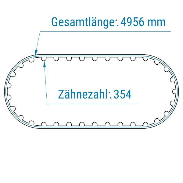 Standard-Antriebsriemen werden als geschlossene, breite Zahnwickel angeboten. Das bedeutet, dass der Zugstrang im Zahnriemen spiralförmig gewickelt und somit nicht unterbrochen ist. Dadurch kann der Riemen große Zugkräfte aufnehmen. Jeder Riemen wird auf die von Ihnen gewünschte Breite zugeschnitten. Die Fertigung erfolgt in Breiten von 200–800 mm. Bei der Länge stehen Ihnen vorgegebene Maße zur Auswahl.