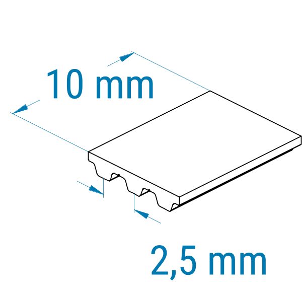 Das T2,5-Profil ist trapezförmig. Zahn und Zahnlücke sind bei diesen Riemen nahezu gleich groß. Der Abstand von Zahnmitte zu Zahnmitte beträgt bei dem T2,5-Profil 2,5 mm.