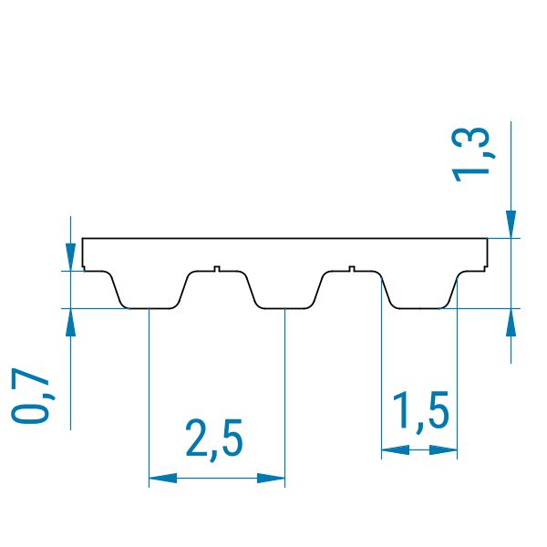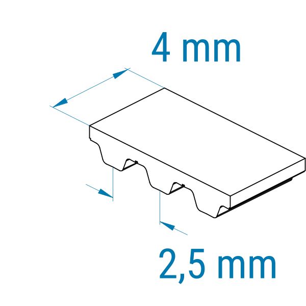 Das T2,5-Profil ist trapezförmig. Zahn und Zahnlücke sind bei diesen Riemen nahezu gleich groß. Der Abstand von Zahnmitte zu Zahnmitte beträgt bei dem T2,5-Profil 2,5 mm.