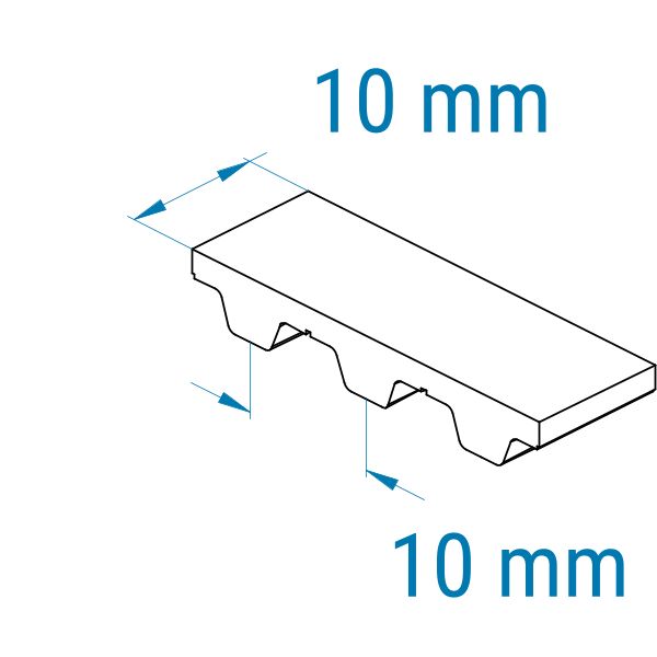 Das T10-Profil ist trapezförmig. Zahn und Zahnlücke sind bei diesen Riemen nahezu gleich groß. Der Abstand von Zahnmitte zu Zahnmitte beträgt bei dem T10-Profil 10 mm.