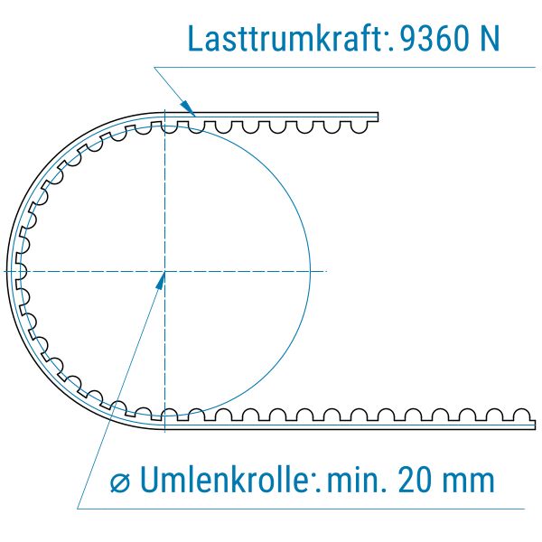 Die Zugträger im Zahnriemen bestimmen die Zugkraft (Lasttrumkraft) des Riemens.