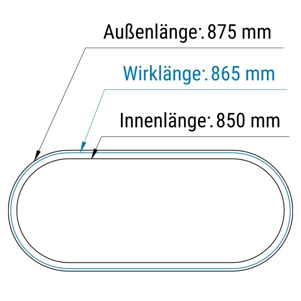 Die Außenlänge wird gemessen, indem ein Maßband außen um den Riemen gelegt wird. Die Innenlänge wird entsprechend innen am Riemen ermittelt.