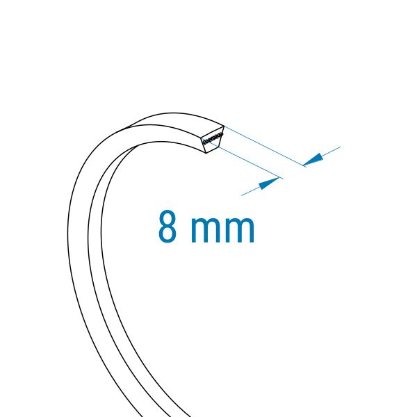 Klassische Keilriemen dieses Profils sind 8 mm breit und gezahnt. Sie werden mit der Innenlänge (Li) angegeben.