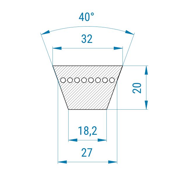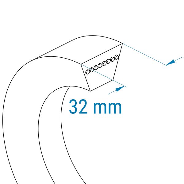 32/D Keilriemen sind glatte Keilriemen mit 32 mm Breite. Sie werden mit der Innenlänge (Li) angegeben.
