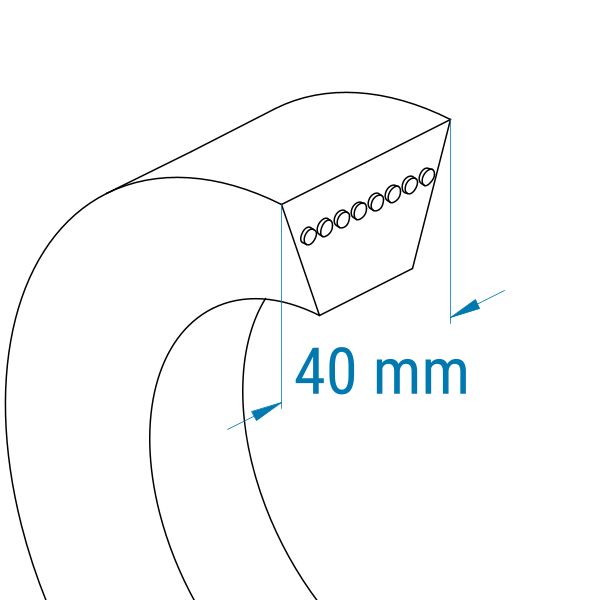 40/E Keilriemen sind glatte Keilriemen mit 40 mm Breite. Sie werden mit der Innenlänge (Li) angegeben.