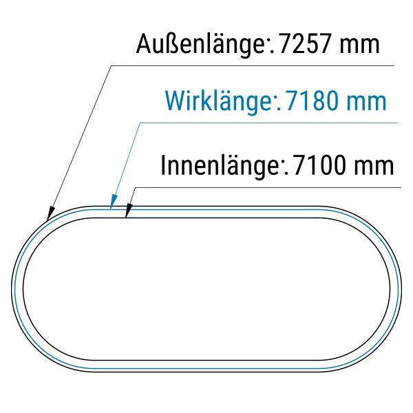 Die Außenlänge wird gemessen, indem ein Maßband außen um den Riemen gelegt wird. Die Innenlänge wird entsprechend innen am Riemen ermittelt.