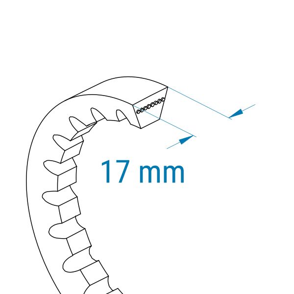 Klassische Keilriemen dieses Profils sind 17 mm breit und gezahnt. Sie werden mit der Innenlänge (Li) angegeben.