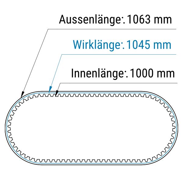 Die Wirklänge wird entlang der Wirkebene gemessen – dort, wo der Riemen seitlich an der Scheibe anliegt.
