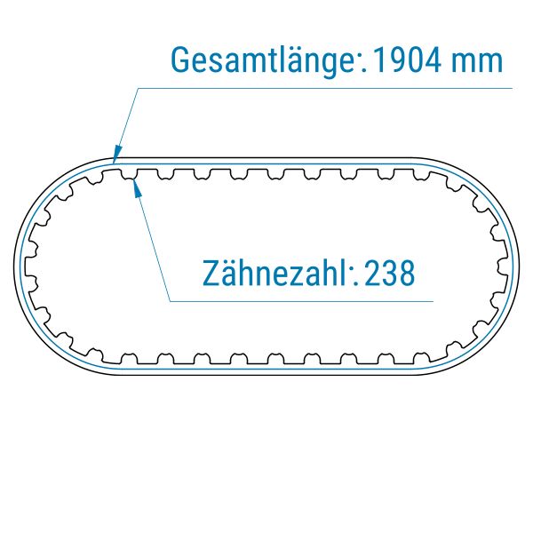 Zahn und Zahnlücke sind nahezu gleich groß. Das 8M-Profil zeigt die Teilung von 8 mm an. Die Teilung ist hierbei der Abstand von Zahnmitte zu Zahnmitte und beträgt 8 mm.