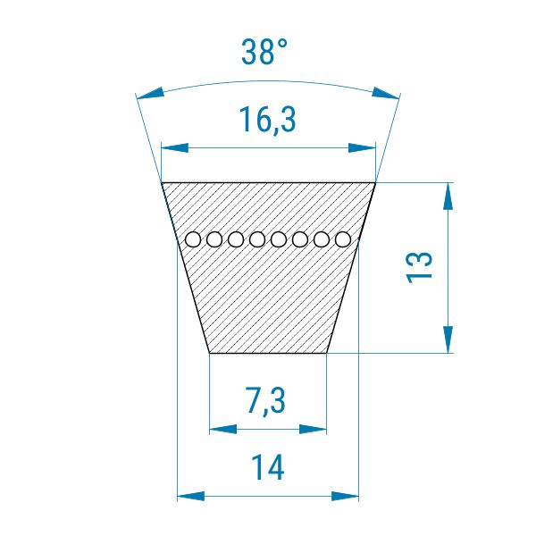 Der verstärkte Quad-Power 4 Keilriemen hat dieselben Maße wie ein Standard XPB-Keilriemen und läuft in denselben Keilriemenscheiben. Mit einer Breite von 16,3 mm ist er daher der ideale Ersatz, wenn normale XPB-Schmalkeilriemen nicht ausreichen.