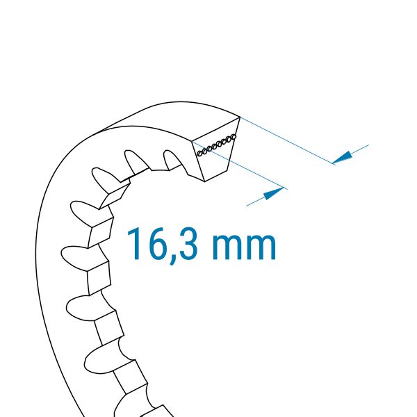Der verstärkte Quad-Power 4 Keilriemen hat dieselben Maße wie ein Standard XPB-Keilriemen und läuft in denselben Keilriemenscheiben. Mit einer Breite von 16,3 mm ist er daher der ideale Ersatz, wenn normale XPB-Schmalkeilriemen nicht ausreichen.