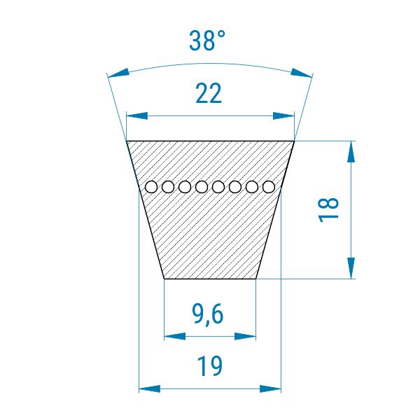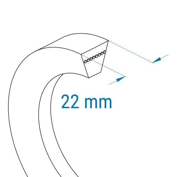Das Profil-SPCP bezeichnet die Breite des Riemens. In diesem Fall beträgt die Breite 22 mm.