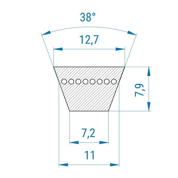 Ihre Höhe beträgt 7,9 mm. Wie bei den Maßen der Außenlänge (La) ist in vielen Fällen auch die Breite der Riemen in Zoll angegeben.