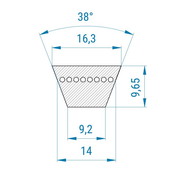 Kupplungskeilriemen 5L haben eine Breite von 16,3 mm.