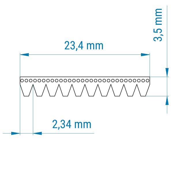 Das PJ-Profil besitzt einen Rippenabstand von 2,34 mm.