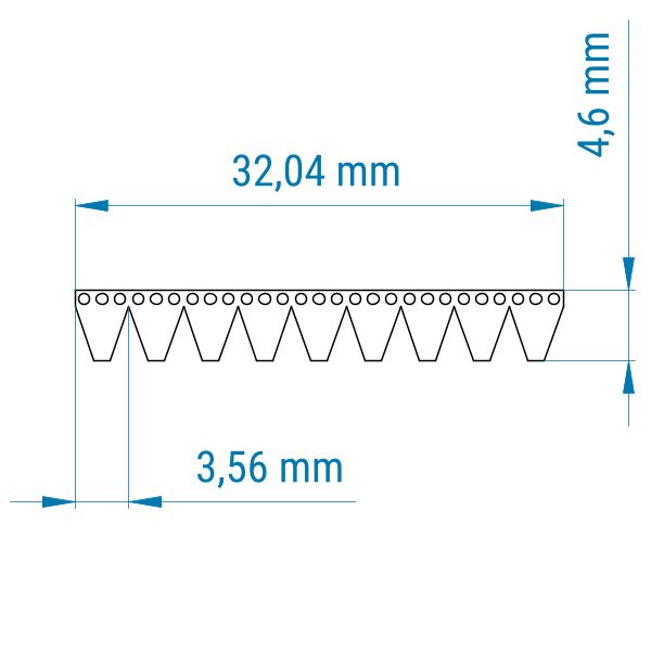 Das Profil eines Keilrippenriemens gibt die Größe und den Abstand der Rippen an.