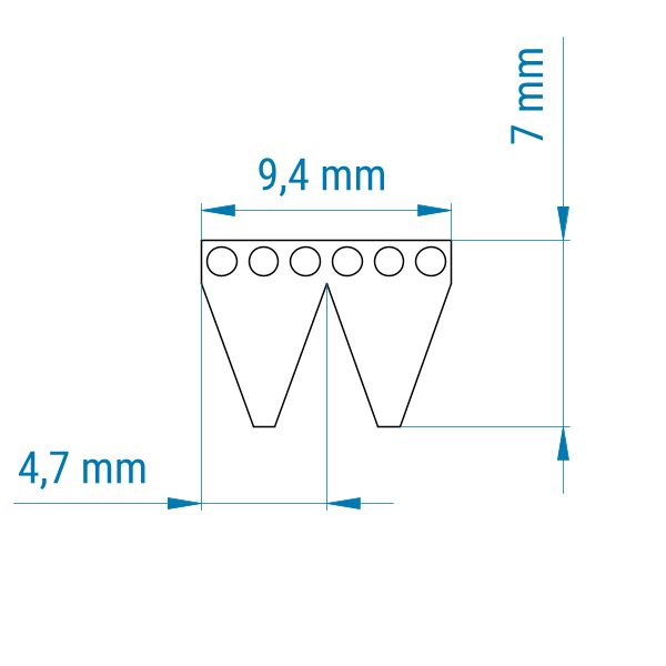 Das Profil eines Keilrippenriemens gibt die Größe und den Abstand der Rippen an.