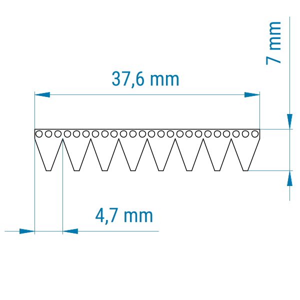 Das PL-Profil besitzt einen Rippenabstand von 4,7 mm.