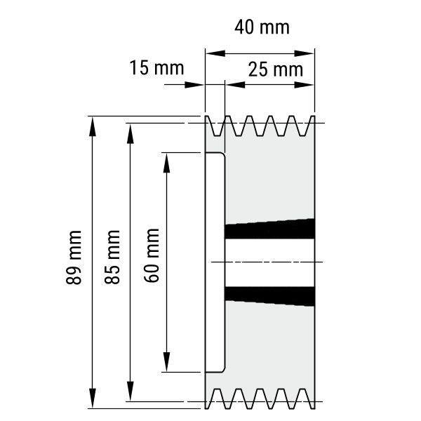 Keilriemenscheiben bestehen aus Grauguss (GG20/GG25 nach DIN EN 1561) und bieten hohe Festigkeit, Formstabilität und gute Dämpfung bei rotierenden Anwendungen. Die rauere Oberfläche erhöht die Reibung zwischen Riemen und Scheibe und sorgt für einen sicheren, kraftschlüssigen Sitz ohne Durchrutschen.