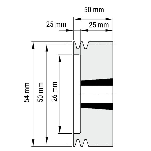 Keilriemenscheiben bestehen aus Grauguss (GG20/GG25 nach DIN EN 1561) und bieten hohe Festigkeit, Formstabilität und gute Dämpfung bei rotierenden Anwendungen. Die rauere Oberfläche erhöht die Reibung zwischen Riemen und Scheibe und sorgt für einen sicheren, kraftschlüssigen Sitz ohne Durchrutschen.
