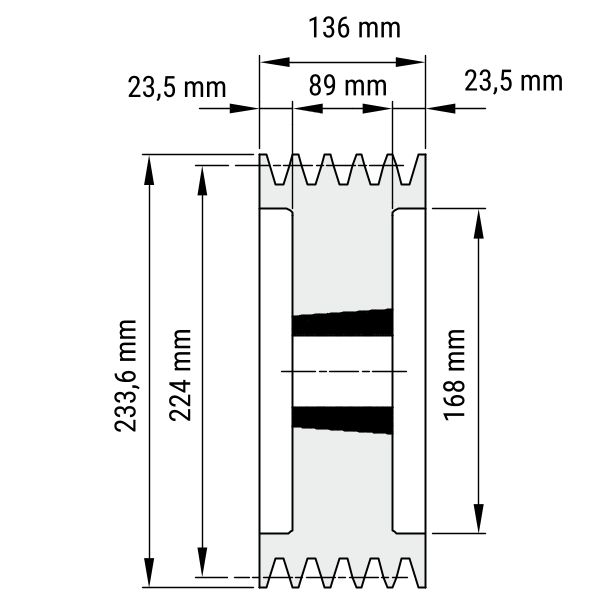 Keilriemenscheiben bestehen aus Grauguss (GG20/GG25 nach DIN EN 1561) und bieten hohe Festigkeit, Formstabilität und gute Dämpfung bei rotierenden Anwendungen. Die rauere Oberfläche erhöht die Reibung zwischen Riemen und Scheibe und sorgt für einen sicheren, kraftschlüssigen Sitz ohne Durchrutschen.