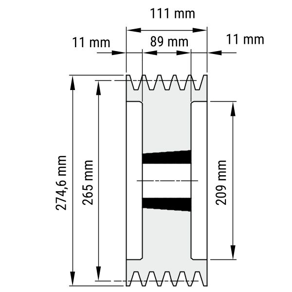 Keilriemenscheiben sind meist mit 1 bis 6 Rillen verfügbar. Die Anzahl richtet sich nach Drehmoment, Bauraum und gewünschter Betriebssicherheit. Mehrere Rillen kommen bei hohen Leistungsanforderungen oder großen Wellen zum Einsatz.