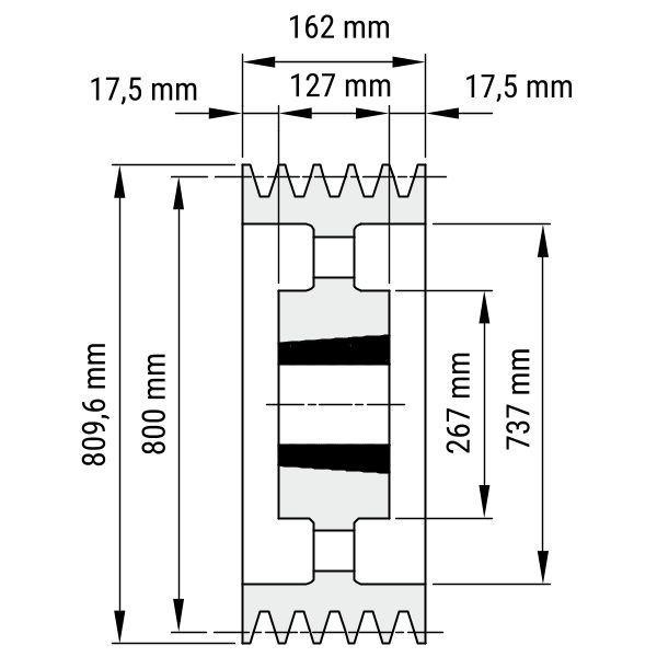 Diese Ausführung bietet hohe Flexibilität für Sonderwellen, Einzelstücke oder Prototypen. Für Serienanwendungen mit genormten Wellen empfiehlt sich der Einsatz von Keilriemenscheiben mit Taper-Spannbuchsen-Einsatz.