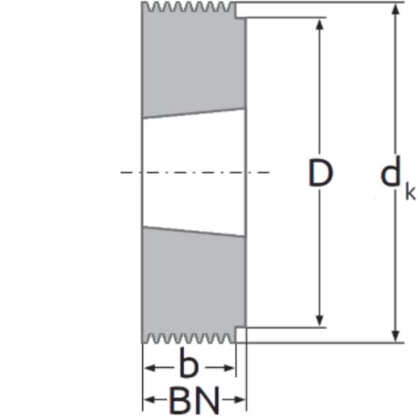 Profil: PJ | Durchmesser: 100 mm | Rillenzahl: 8 | Grauguss | für Taperbuchse 1610 (ø 14 - 42 mm)