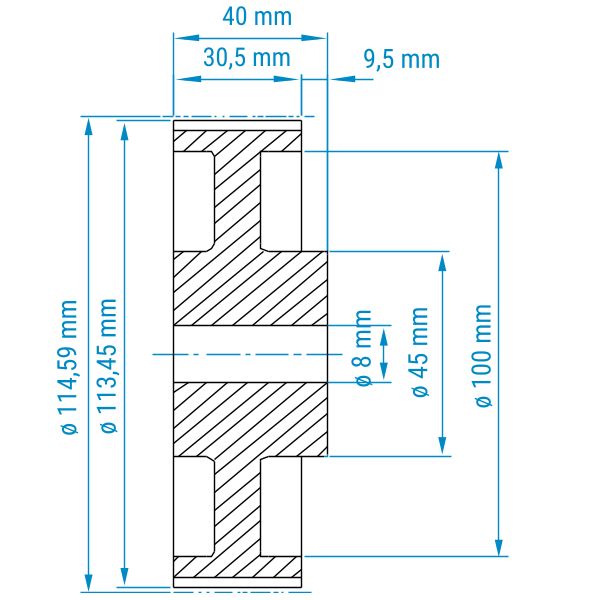 Die Zahnriemenscheibe wird mit einer zentralen Bohrung in der Mitte der Scheibe gefertigt.