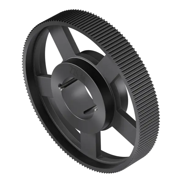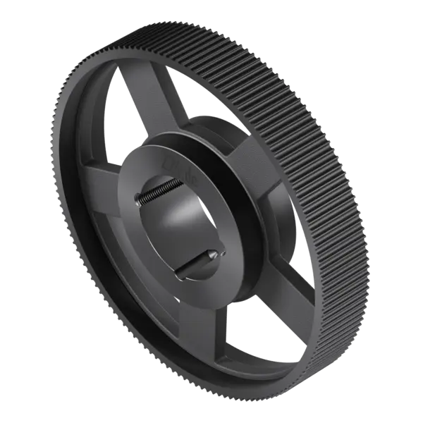Zahnriemenscheiben können mit einer Befestigung für Taperbuchsen gefertigt werden.