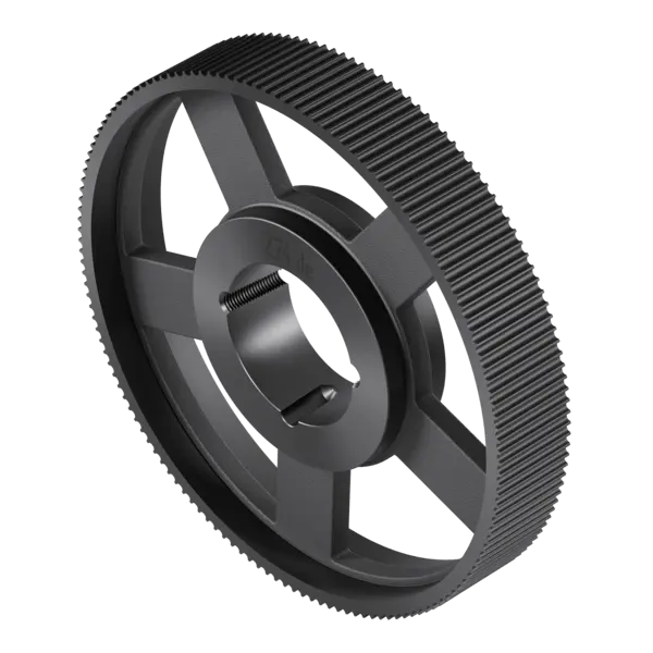 Zahnriemenscheiben können mit einer Befestigung für Taperbuchsen gefertigt werden.