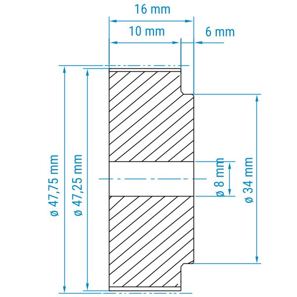 Die Zahnriemenscheiben werden in der Toleranzklasse H7 gefertigt.