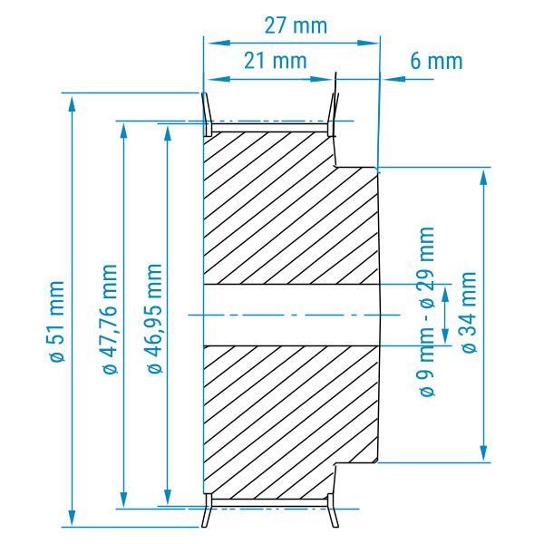 Die Zahnriemenscheiben im T5-Profil sind somit für die Zahnriemen im T5-Profil mit 5 mm Teilung einsetzbar.