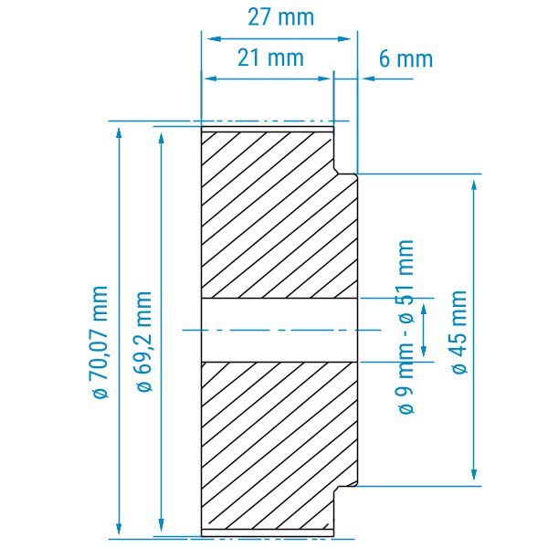 Die Zahnriemenscheiben werden in der Toleranzklasse H7 gefertigt.