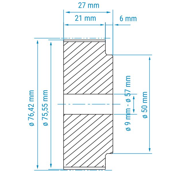 Die Zahnriemenscheiben werden in der Toleranzklasse H7 gefertigt.