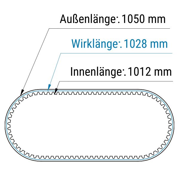Keilriemen können mit drei Längen angegeben werden: Innenlänge (LI), Außenlänge (LA) und Wirklänge (LW).