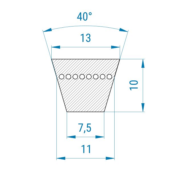 Riemen dieses Profils sind 13 mm breit. Zudem steht das "AV" im Riemennamen für Automotive. Es gibt an, dass die Riemen für Kfz und Lastfahrzeuge geeignet sind.