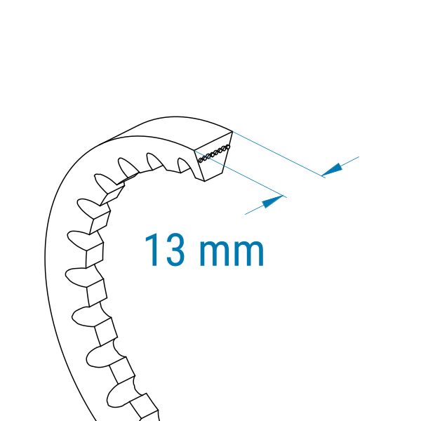 Die Bezeichnung AVX13 bezieht sich auf die Breite des Keilriemens.