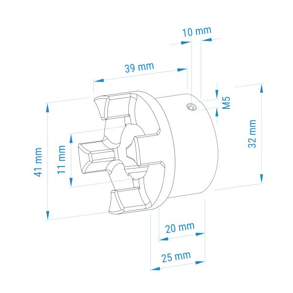 Kupplungsnabe Typ 1 (Standardnabe) | Durchmesser 41 mm | Nabenlänge 25 mm | Aluminium | Fertigbohrung mit Nut und Gewinde gegenüber der Nut